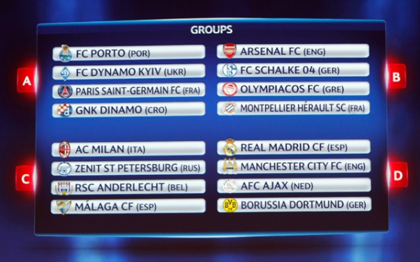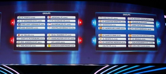 These is how the draw for the group stages for the 2012/13 UEFA Champions League went about today at the Grimaldi Forum ( 30 August 2012) in Monaco. The UCL group stage 12/13 draw was held at 17.45 CET ( 16.45 BST). The 32 teams were divided into eight groups. Prior to the group stage draw, the teams had been divided into four pots of eight each. The defending champions for the 2012/13 Champions League season are Chelsea, who beat Bayern in last season’s final.