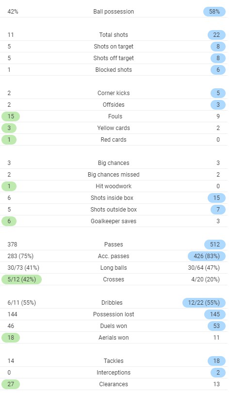 Full time post match stats from Everton v LFC 2020 for comparison (EFC on left, LFC on right)