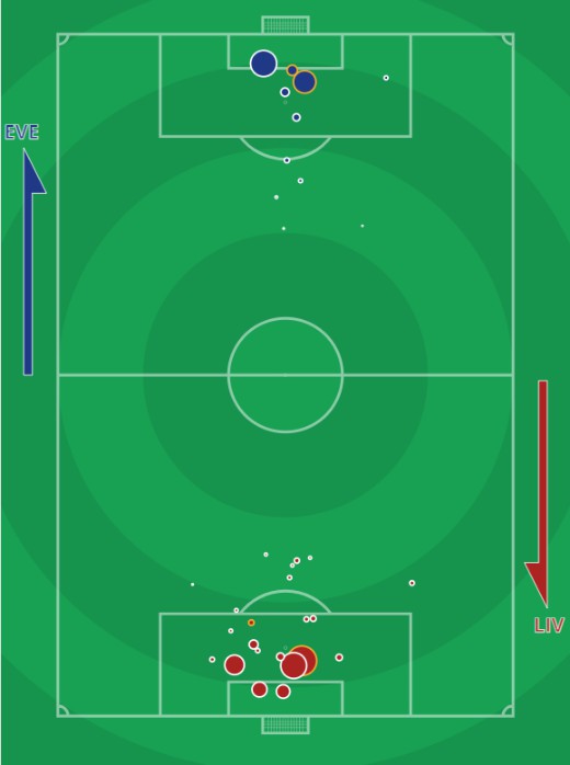 xG of individual goals in Everton vs Liverpool 2-2