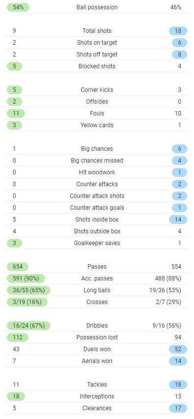Full time post match stats Chelsea vs Man City 2021 for comparison