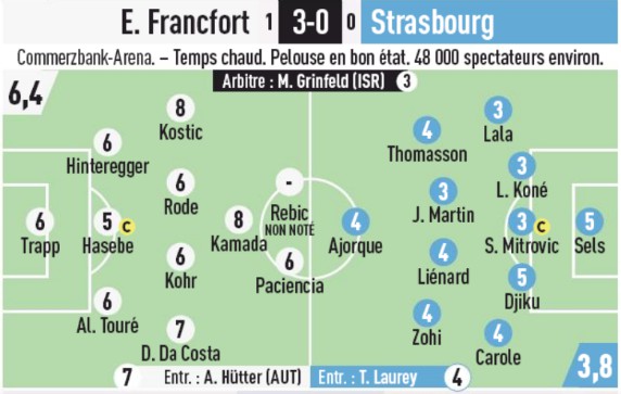 Last season’s semi-finalists Eintracht Frankfurt booked their spot in the group stages of the Europa League with a 3-0 win over RCSA in the second leg of their playoff round tie. Strasbourg came into this tie holding a narrow 1-0 advantage from the first leg, but this tie was an ill tempered one, with Ante Rebic and Dmitri Lienard both red carded. Numerous other players were yellow carded, and French newspaper L’Equipe weren’t too pleased with the performance of referee Orel Grinfeld, giving him just a 3/10