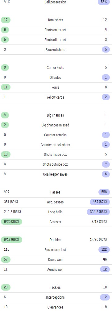 Manchester City vs Bayern Munich 3-0 Match Stats for comparison