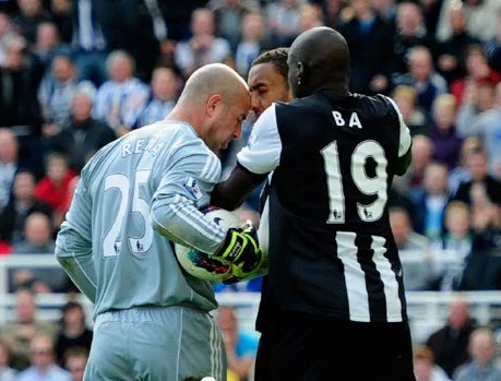 Liverpool keeper Pepe Reina was red carded for his headbutt on Newcastle United’s James Perch in the Reds’ 2-0 loss to Newcastle on April 1, 2012.