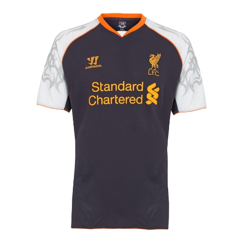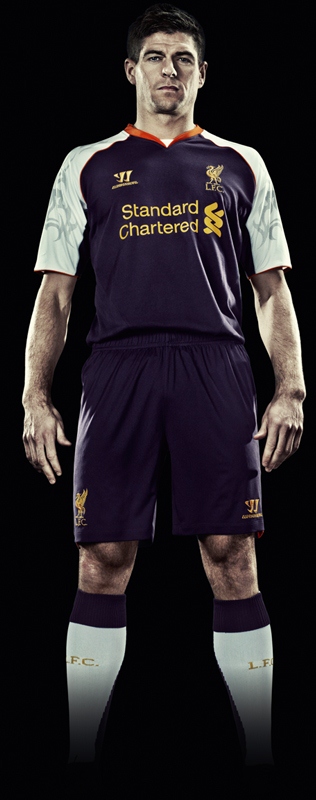 Liverpool’s new 2012/13 third kit has been unveiled today ( 5 July, 2012- 00.01 UK time) by kit partners Warrior Sports. Dubbed to be a nightshade, orange and white creation and inspired by previous goalkeeper shirts worn by David James and Jose Reina, the new LFC 3rd kit 2013 will be worn by the club primarily in their Europa League campaign. The Reds finished a disappointing 8th in the 2011/12 Premier League but qualified for the 2012/2013 Europa League by virtue of their win in the 2011/12 Carling Cup over Cardiff City on penalties.