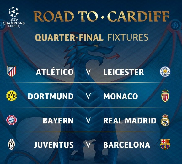 The draw for the quarterfinals of the 2016/2017 Champions League has been made today (March 17, 2017) and we have four intriguing and well matched quarterfinal ties.