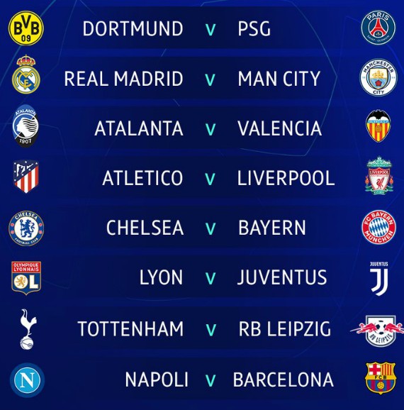 Last season’s losing finalists Tottenham have been drawn against RB Leipzig, while there’s another Anglo-German tie in the form of Chelsea vs Bayern.