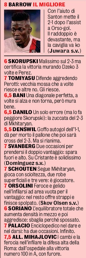 Gazzetta dello Sport paper ratings Roma 2 Bologna 3
