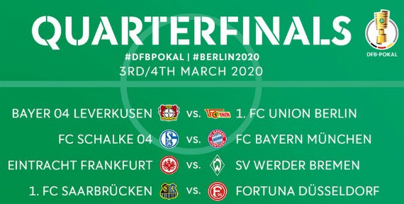 Three of the four semi-finals are all Bundesliga affairs. Apart from the Schalke Bayern clash, the other two see Bayer Leverkusen taking on Union Berlin and Eintracht Frankfurt hosting Werder Bremen respectively.
