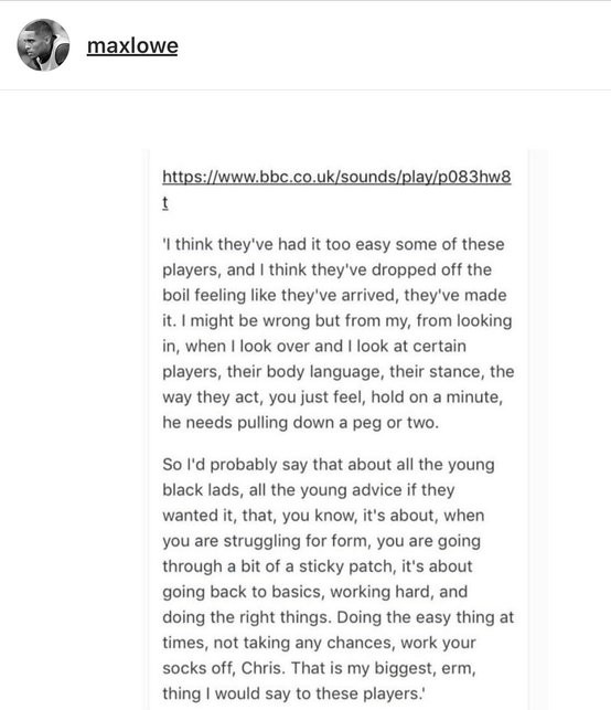 Max Lowe Post on Instagram & transcript of Craig Ramage comments