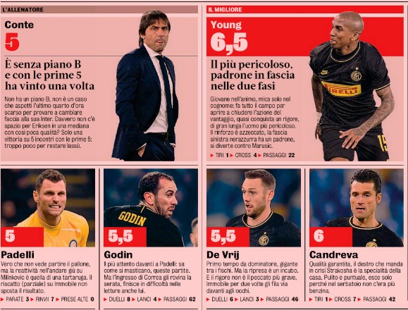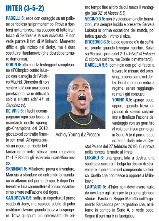 Here is a look at how the big Italian newspapers reacted following Lazio’s 2-1 win over Inter Milan. Ashley Young was rated as Inter’s best player on the evening, just like his fellow Man Utd team mate, Chris Smalling had been for Roma against Bologna over the weekend.