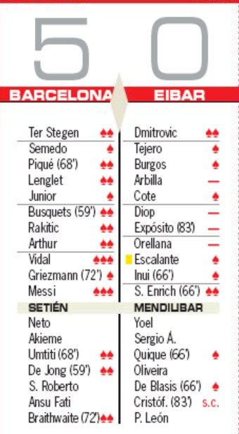 ABC Spanish newspaper ratings Barca 5 Eibar 0