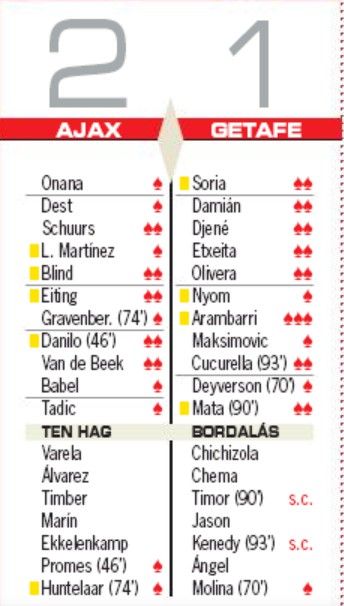 Here is how some of the Spanish newspapers rated Ajax and Getafe’s players following the former’s 2-1 win in the second leg of their Europa League Round of 32 clash in Amsterdam. Despite the defeat, Getafe advanced to the Round of 16 (3-2 on aggregate), meaning an exit from Europe for last year’s Champions League semifinalists.
