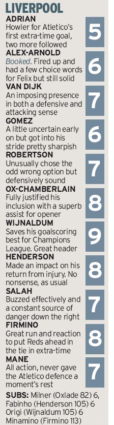 Daily Mirror Liverpool player ratings vs Atletico Madrid