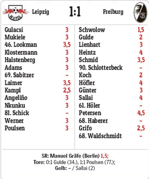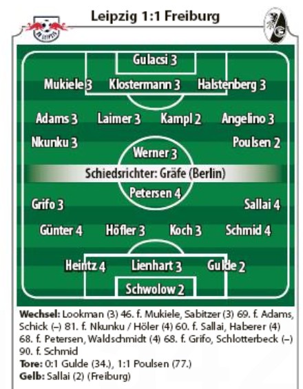 Rheinitsche Post newspaper ratings Leipzig v Freiburg (Einzelkritik/noten)