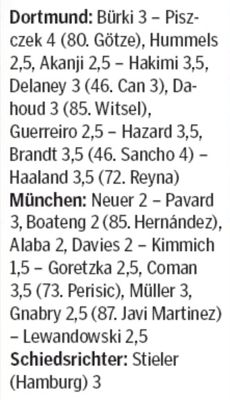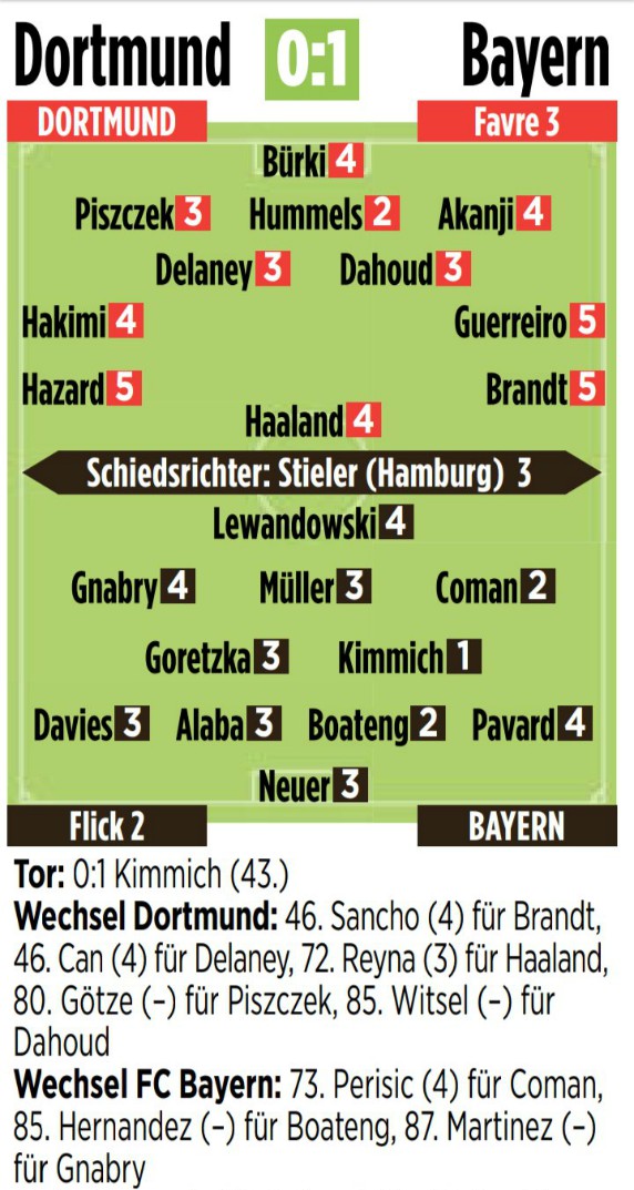 Bild newspaper player ratings Dortmund vs Bayern 2020