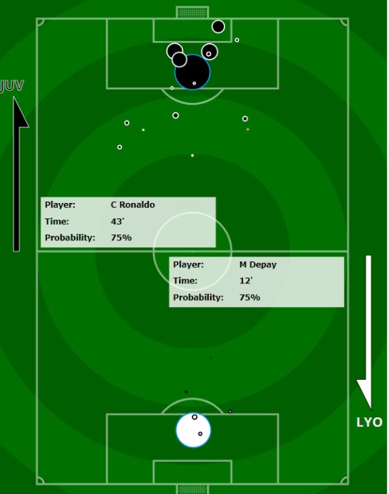 Model 1 xG score Juventus 1.9-0.2 Lyon (without the two penalties awarded in the game)