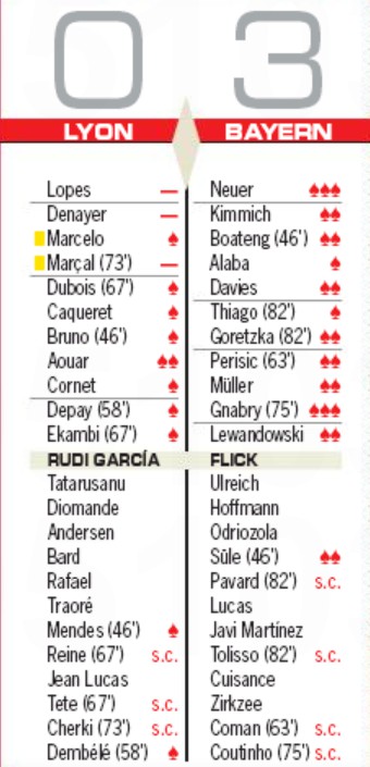 AS Spanish newspaper ratings Olympique Lyonnais Bayern