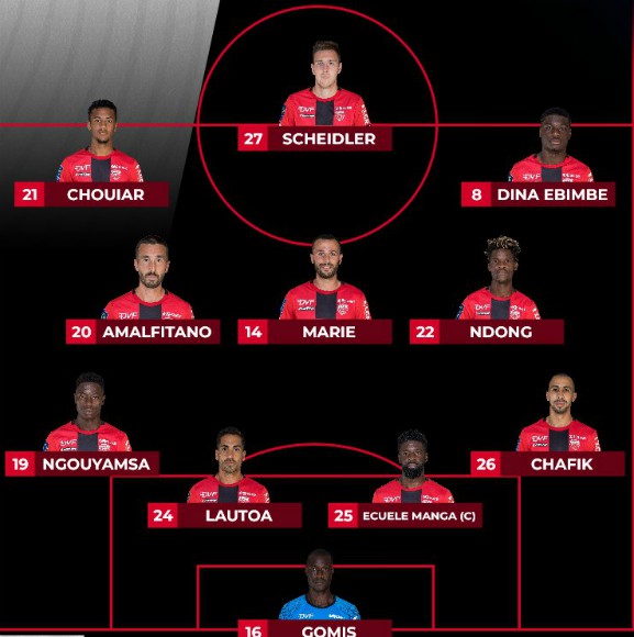 Dijon: Gomis, Ngouyamsa, Lautoa, Ecuele Manga, Chafik, Ndong, Marie, Amalfitano, Chouiar, Scheidler, Dina Ebimbe