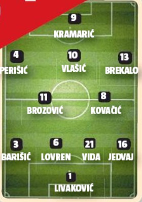 Croatia: Livakovic, Melnjak, Caleta-Car, Lovren, Uremovic, Vlasic, Brozovic, Kovacic, Perisic, Kramaric, Rebic