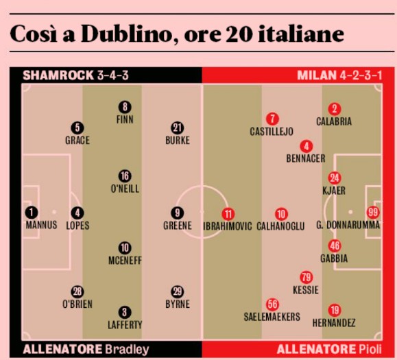 Gazzetta dello Sport expected lineup Shamrock Milan