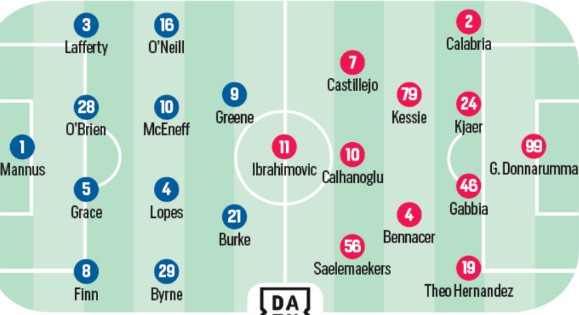 Corriere dello Sport predicted starting XI Shamrock Rovers v Milan