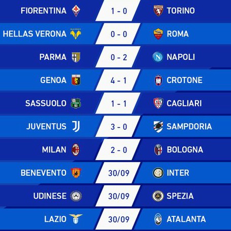 Serie A results first round 20/21 season