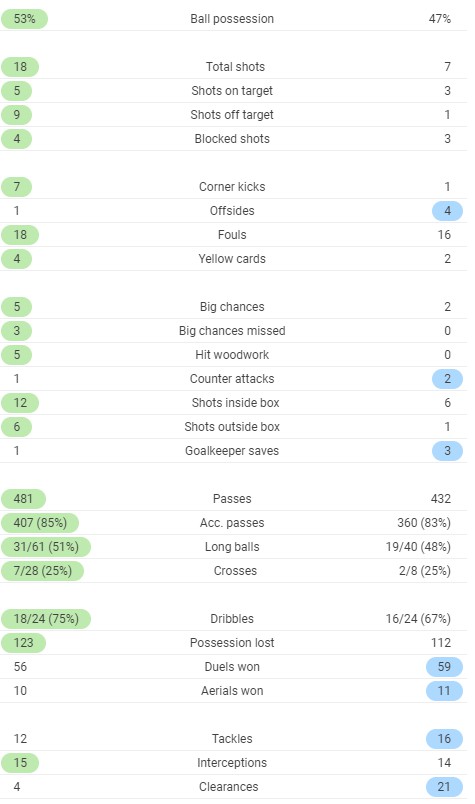 Here is a look at the full time stats that also show that Brighton created more. Like with the xG in the Chelsea game, a missed opportunity for points for the Seagulls.
