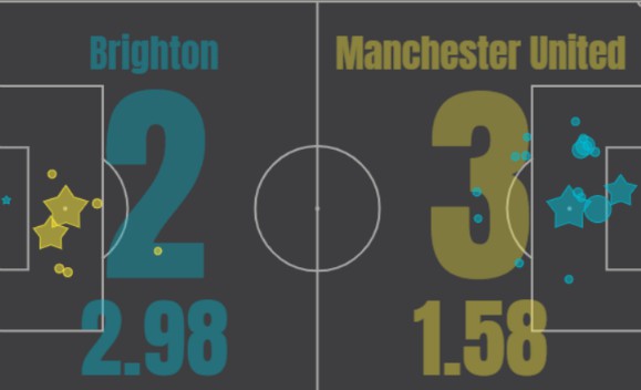 xG Brighton 2.98-1.58 Manchester United (Actual score Brighton 2-3 Man Utd)