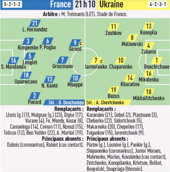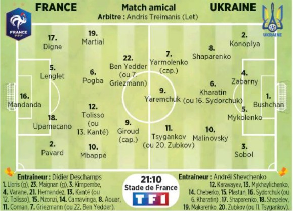 Here is a look at the possible lineups for France vs Ukraine tonight from several different French newspapers. L’Equipe thinks Les Bleus will persist with their three at the back strategy, but the likes of Le Parisien and Nice-Matin reckon Deschamps will revert to a four man defence.