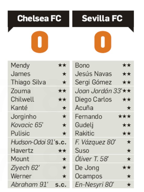 Diario de Sevilla player ratings Chelsea-Sevilla