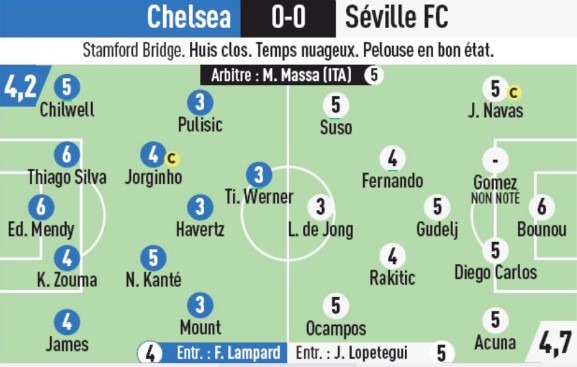 L’Equipe ratings for Chelsea vs Sevilla MD1 Champions League