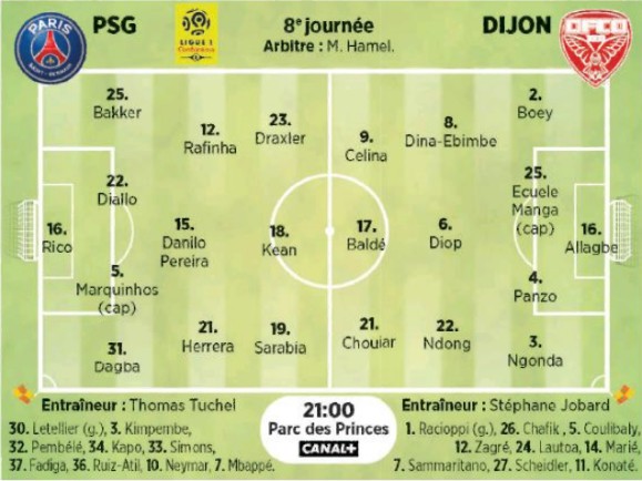 L’Equipe predicted starting lineup for Paris Saint Germain vs Dijon 2020