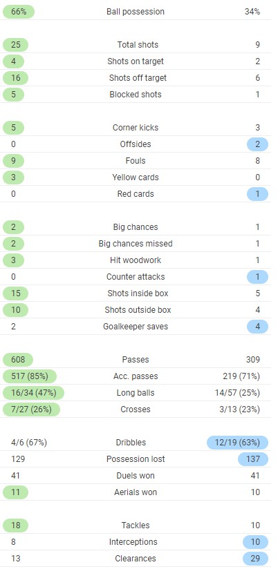 Full time post match stats Leeds vs Arsenal 0-0 (LUFC stats on left)