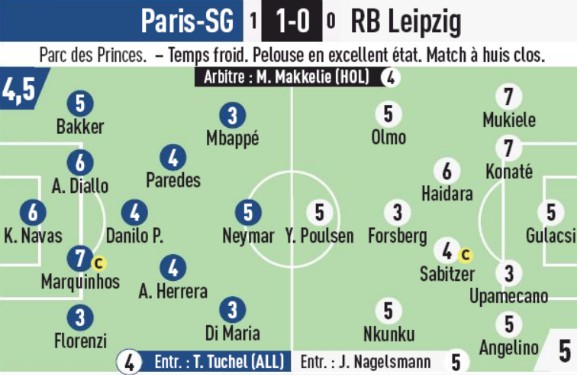 French newspaper L’Equipe not really impressed with either side, and Paris SG despite their victory rank lower than RB Leipzig in their books.
