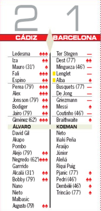 AS newspaper ratings Cadiz 2-1 Barca 2020