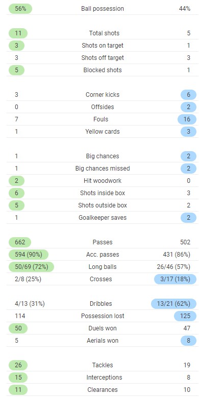 Fulltime post match stats Real 2-0 Atleti