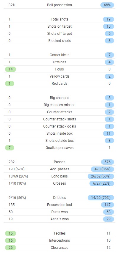 Full time post match stats West Brom 0-3 Aston Villa December 2020