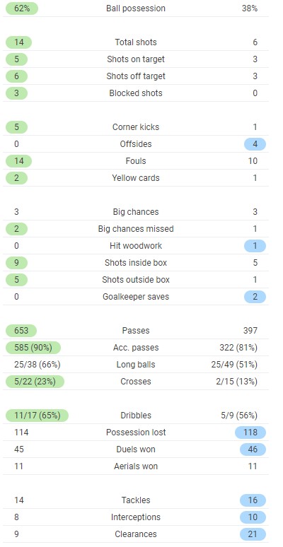 Full time post match stats for comparison (MUFC 3-3 Everton)