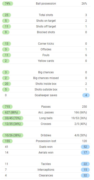 As you can see Brighton did enough to score nearly 3 goals, but only netted once. They had nearly 25 shots!
