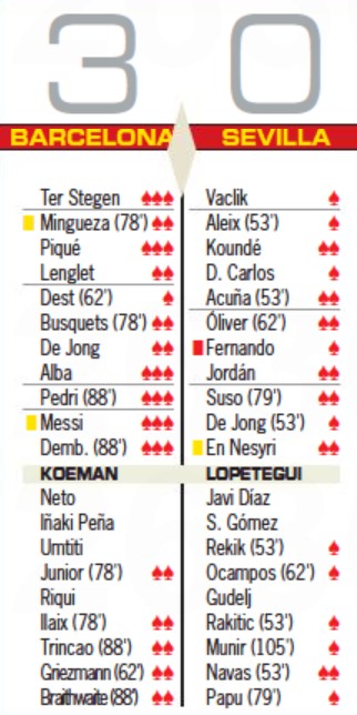 Sport newspaper player ratings FCB v Sevilla CDR March 2021