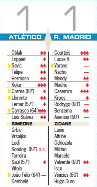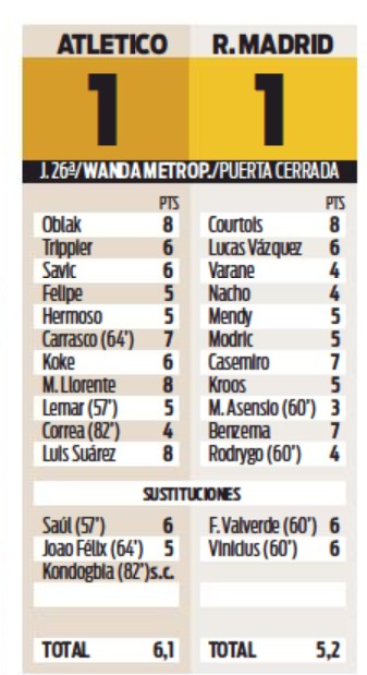 Mundo Deportivo player ratings Atleti 1 Real Madrid 1 2021