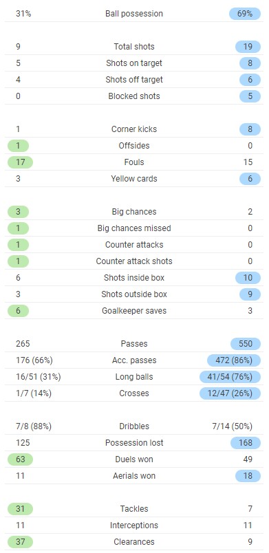 Full time post match stats BVB 2-2 Sevilla for comparison