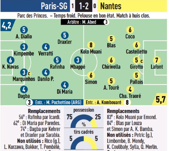 Here is a look at the player ratings for Paris SG vs FCN over the weekend. PSG lost the game 2-1 to Nantes- another boost to table topping Lille.