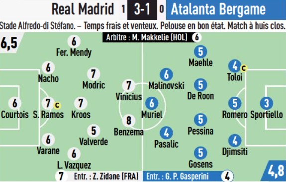 L’Equipe player ratings RMA 3-1 Atalanta Champions League