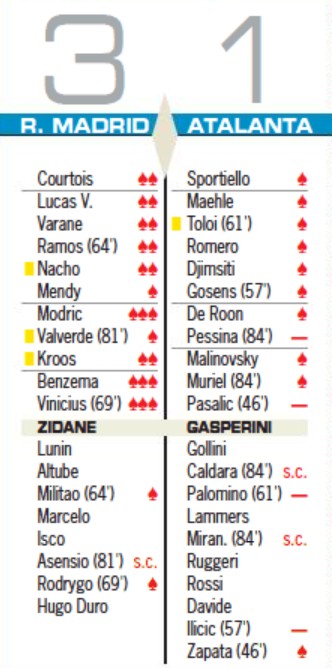 Mundo Deportivo newspaper ratings Real Madrid Atalanta UCL