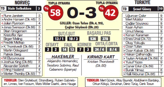 Hurriyet player ratings Norway 0-3 Turkey