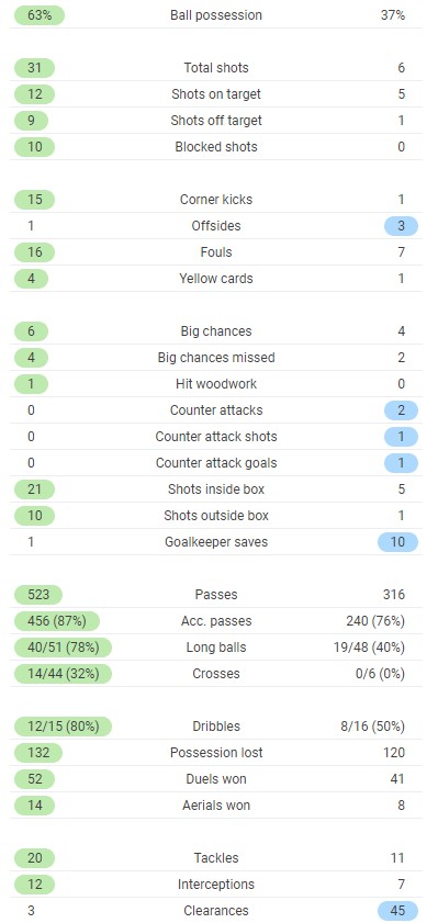 Here is a look at the xG stats for Bayern Munich vs PSG (April 7, 2021- Champions League quarterfinal first leg). Bayern dominated this game in terms of shots and therefore on the xG metric, but PSG made the most of their opportunities and won 3-2 thanks to Kylian Mbappe’s brace.