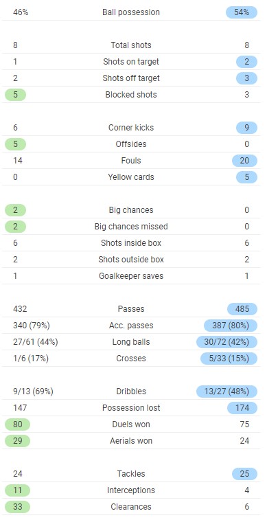 Full time post match stats Chelsea Porto 0-1 for comparison