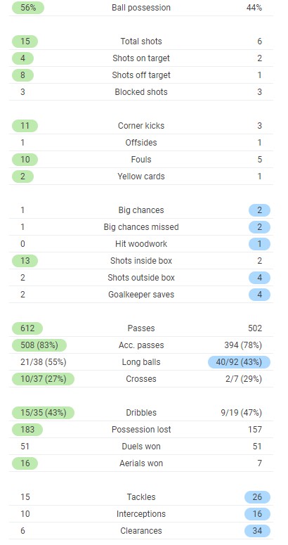 Full time post match stats Liverpool vs Real Madrid 0-0 April 2021 for comparison