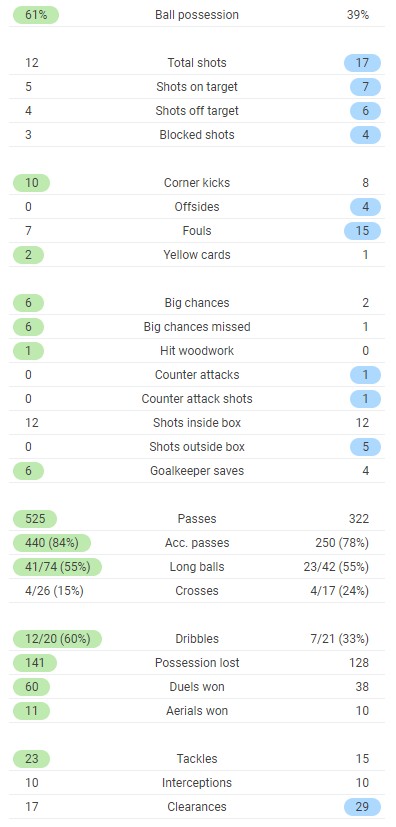 FT post match stats Leeds v Liverpool 1-1 for comparison (LUFC stats on left, LFC on right)